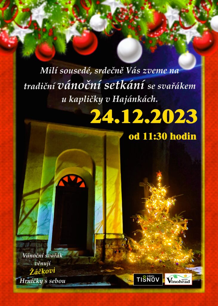 Spolek Vinohrad Vás srdečně zve na vánoční setkání sousedů u stromečku v Hajánkách, kde se potkáme při společném zpívání vánočních koled, povídání si a popíjení čaje nebo svařáčku.