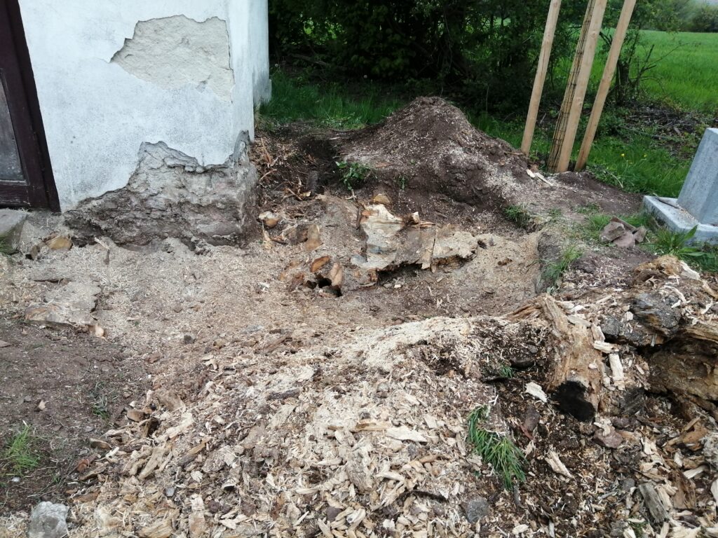 Ve dnech 22.4. – 23.4. proběhlo odstranění pařezu odbornou firmou, vyřezáním a vydlabáním.