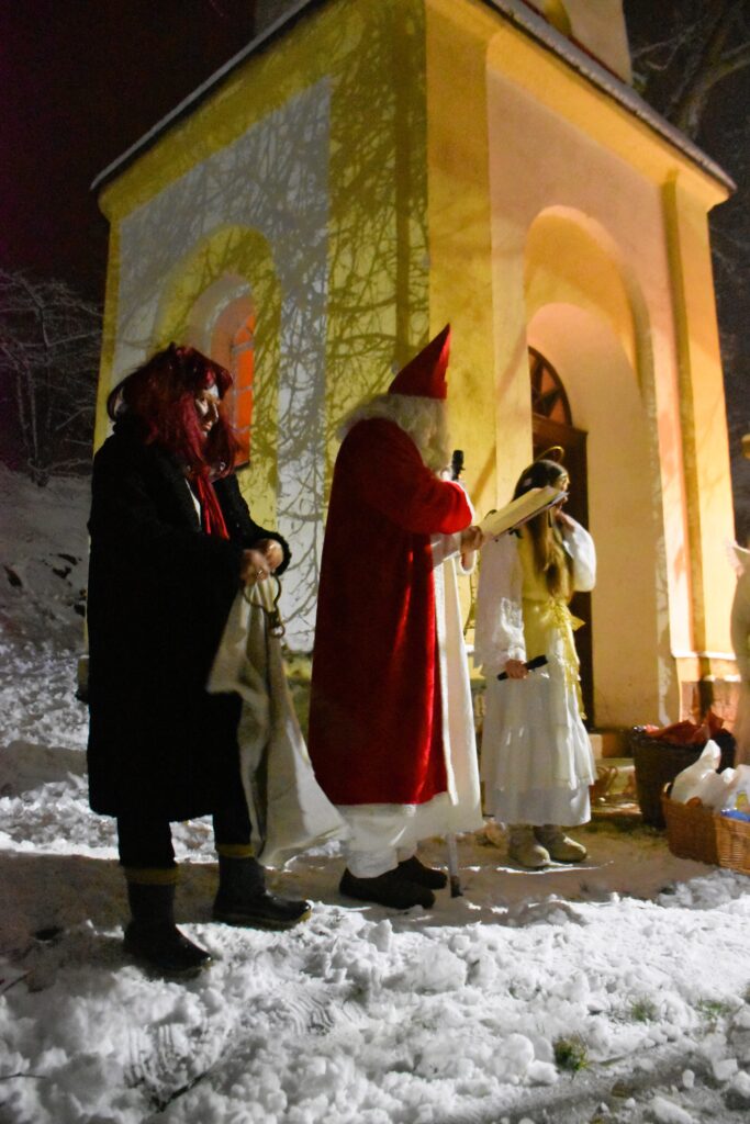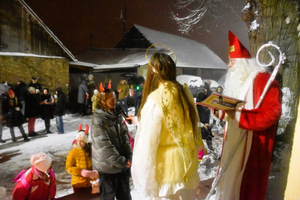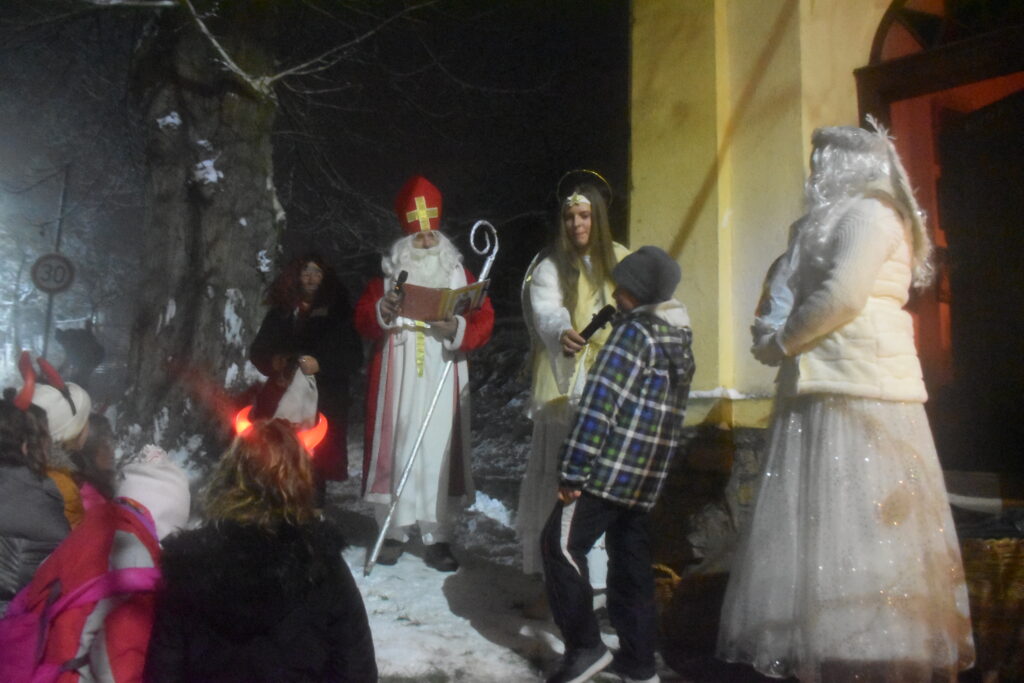 K velkému překvapení nám letos zrovna na svátek Mikuláše napadl i první sníh, proto jsme na zahřátí pro děti připravili andělský čaj a pro dospělé čertovský svařák.